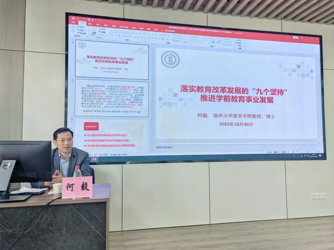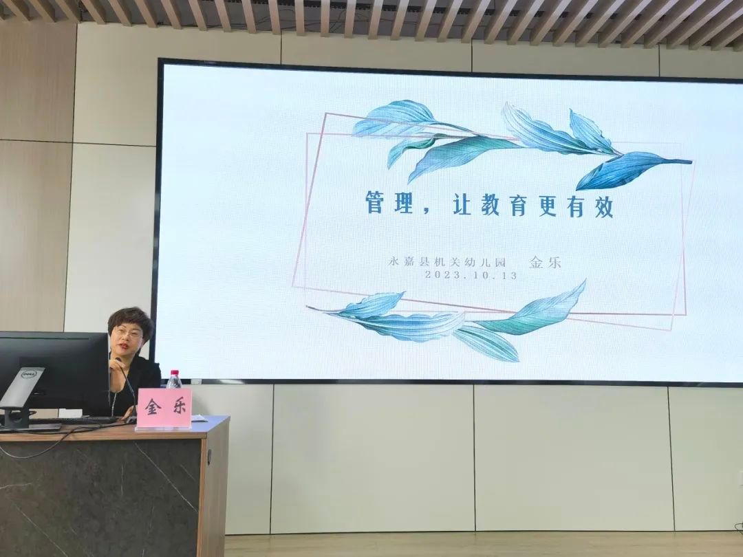 浙江省特级教师、永嘉县岩头镇中心幼儿园园长,永嘉县机关幼儿园园长兼党支部书记金乐为大家带来了《管理,让教育更加有效》的专题讲座。金特的讲座为大家详细深入的阐明了行之有效的管理经验与技巧,从管理的概念、本质、主体、有效性和管理要素与原则等方面让大家对于幼儿园管理的理解和认识得到了进一步的深化,提供了宝贵的实践经验。通过本次讲座,学员意识到,作为幼儿园的管理者应该更加注重以下几点:首先,要树立正确的管理理念,始终坚持“以人为本”,关注老师的情感需求和发展;其次,要学会与老师进行充分的沟通和交流,了解他们的想法和需求,并积极听取他们的意见和建议;最后,要制定明确的目标和计划,建立完善的评价体系,以及加强团队建设等方面的管理工作。