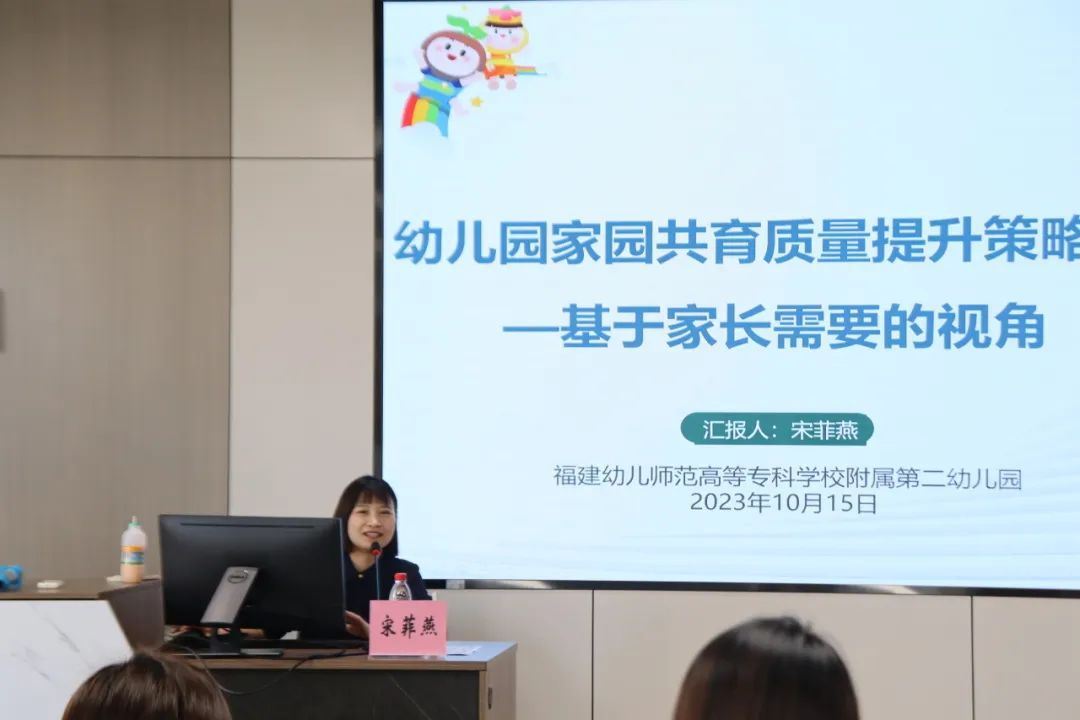 福建幼儿师范高等专科学校附属第二幼儿园保教副主任宋菲燕博士讲解了家园共育对幼儿园发展的重要性以及提升其质量的策略,让学员意识到,提升家园共育质量不仅是教育的问题,也是管理和沟通的问题。宋博士提出以下四个策略:1.为每个孩子建立一个成长档案;2.建立有效的沟通机制;3.邀请家长参与教育活动;4.融入班本课程。总之,让教师能够更好地与家长沟通,理解家长的需求和期望,从而更好地开展家园共育工作。