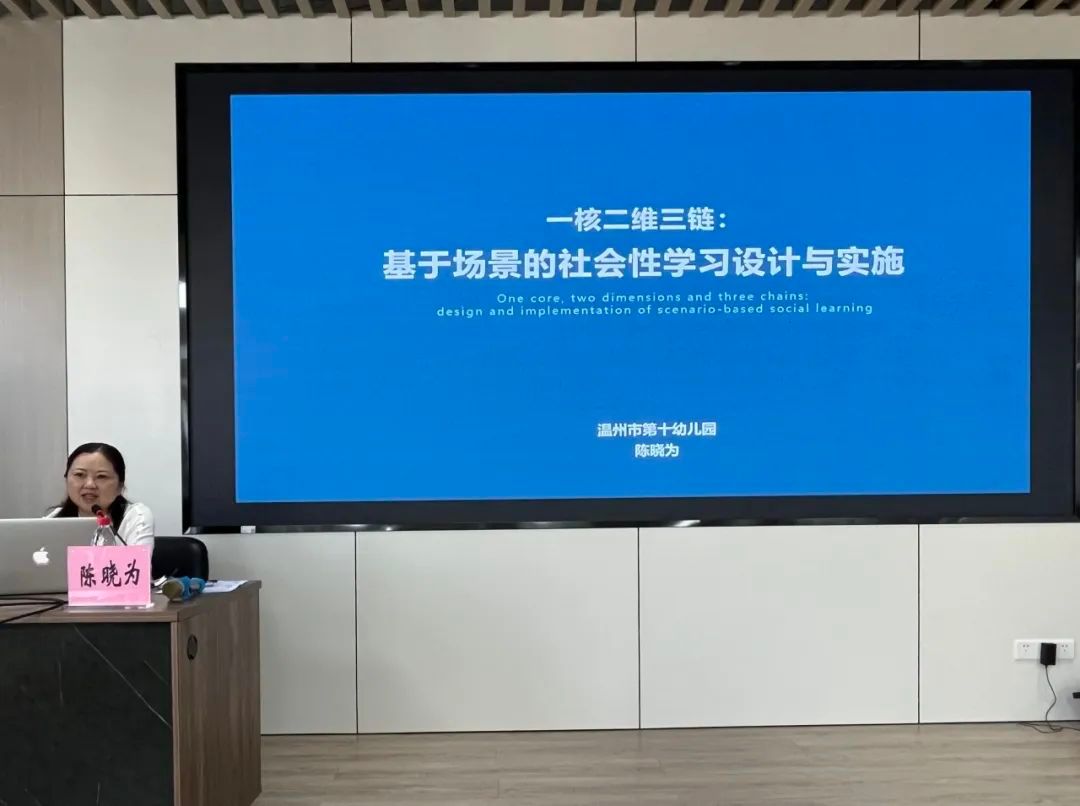 温州市第十幼儿园陈晓为园长通过温十幼鲜活的创办历程告诉学员们:幼儿园社会性学习首先要尊重儿童的学习方式。其次,幼儿园社会性学习要基于当下幼儿园社会性学习场景的开发、利用和善用;最后,幼儿园社会性学习要基于幼儿园周边环境资源的评估。陈特通过一个个鲜活的案例告诉学员如何根据幼儿的年龄特点不断调整策略,实施正对性的指导,理论联系实际,让学员更加清楚如何利用幼儿园的资源进行社会性课程的开发。