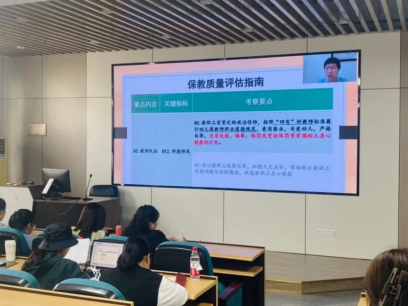 华东师范大学学前教育系左志宏教授从《评估指南》中教师队伍质量评估是什么?从评估指标看《评估指南》对教师提出了哪些?幼儿园教师队伍质量提升的着力点有哪些?三个方面为学员系统地阐述了如何从评估指南的角度提升幼儿教师队伍的质量。左教授详细地讲述了评估指南的各项指标,包括师德师风、专业知识、专业能力、教学能力、学习与发展等多个方面。左教授还提出,每个指标都有具体的评估标准和方法,以及相应的改进措施,旨在促进幼儿教师队伍的全面发展,提高其教学质量和效果。