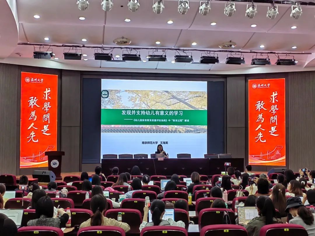 南京师范大学学前教育政策研究中心主任王海英教授作《发现并支持幼儿有意义的学习:幼儿园保育教育质量评估指南“教育过程”解读》及《以儿童海报为抓手的幼儿园教育变革》专题讲座。在讲座中,王教授为学员们解读了《评估指南》出台的背景及意义。随后从基本内容、核心内涵和质量状况自评三个方面详细讲解了《评估指南》中“教育过程”的过程评估、自我评估和班级观察指标的关注要点,并提出教师应发现并支持幼儿有意义的学习。此外,王教授还深入讲述了如何通过儿童海报探索幼儿园环境变革、推动幼儿园课程变革、实现幼儿园教育变革,对幼儿园教师创设高效、科学的幼儿园环境具有重要的理论和实践指导价值。王教授为学员们梳理了儿童海报的核心内涵、基本类型及多元意义,并以“儿童海报”为抓手展示了儿童视角实践研究系列,从而指出儿童海报是幼儿园环境变革和课程变革的杠杆。