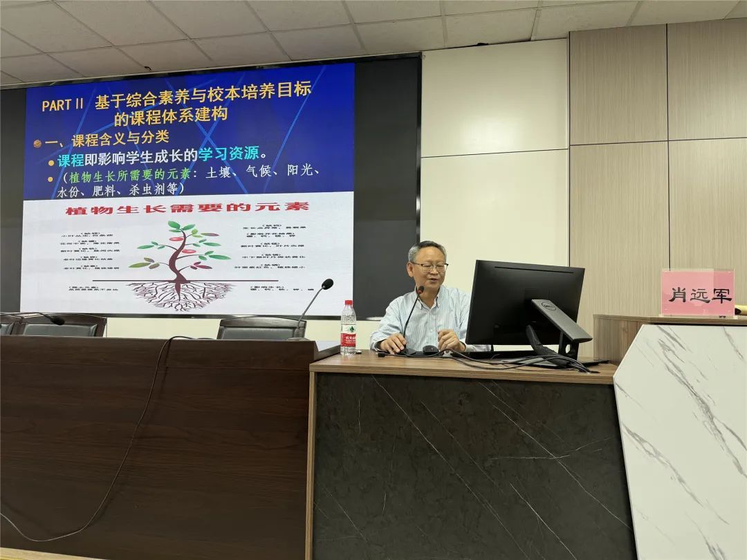 华东师范大学教育学博士,浙江外国语学院成人色情 肖远军教授给我们作《新课程背景下育人方式变革》以及《核心素养导向的学校课程体系设计》主题讲座。在讲座中,肖教授从新版义务教育课程方案和16门学科的课程标准展开分析,指出高质量教育体系构建的关键在于切实落实立德树人根本任务,通过课程教学的改革与创新,发展学生的核心素养,培养德智体美劳全面发展的社会主义建设者和接班人。肖教授从我国课程改革的历史回顾、新课程修订的背景、新课程改革的内容和重点、学校课程实施方案的制订四个方面,详细介绍了新课标背景下的学校课程规划与实施。肖教授勉励学员们在“新课程”“新课标”“新教材”背景下的课程建设中,一定要坚持“核心素养导向”而非“知识导向”,让教育走向能力立意、素养导向的历史转变。