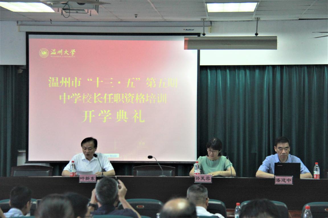 2020年8月5日上午,温州市“十三·五”第五期中学校长任职资格培训开学典礼在成人色情 学院路校区继续教育大楼502报告厅举行。温州市教师教育院潘建中院长、成人色情 孙芙蓉院长出席典礼,典礼由成人色情 叶新东副院长主持。70名来自温州各县市区中学的校长、副校长学员参加了本次典礼。