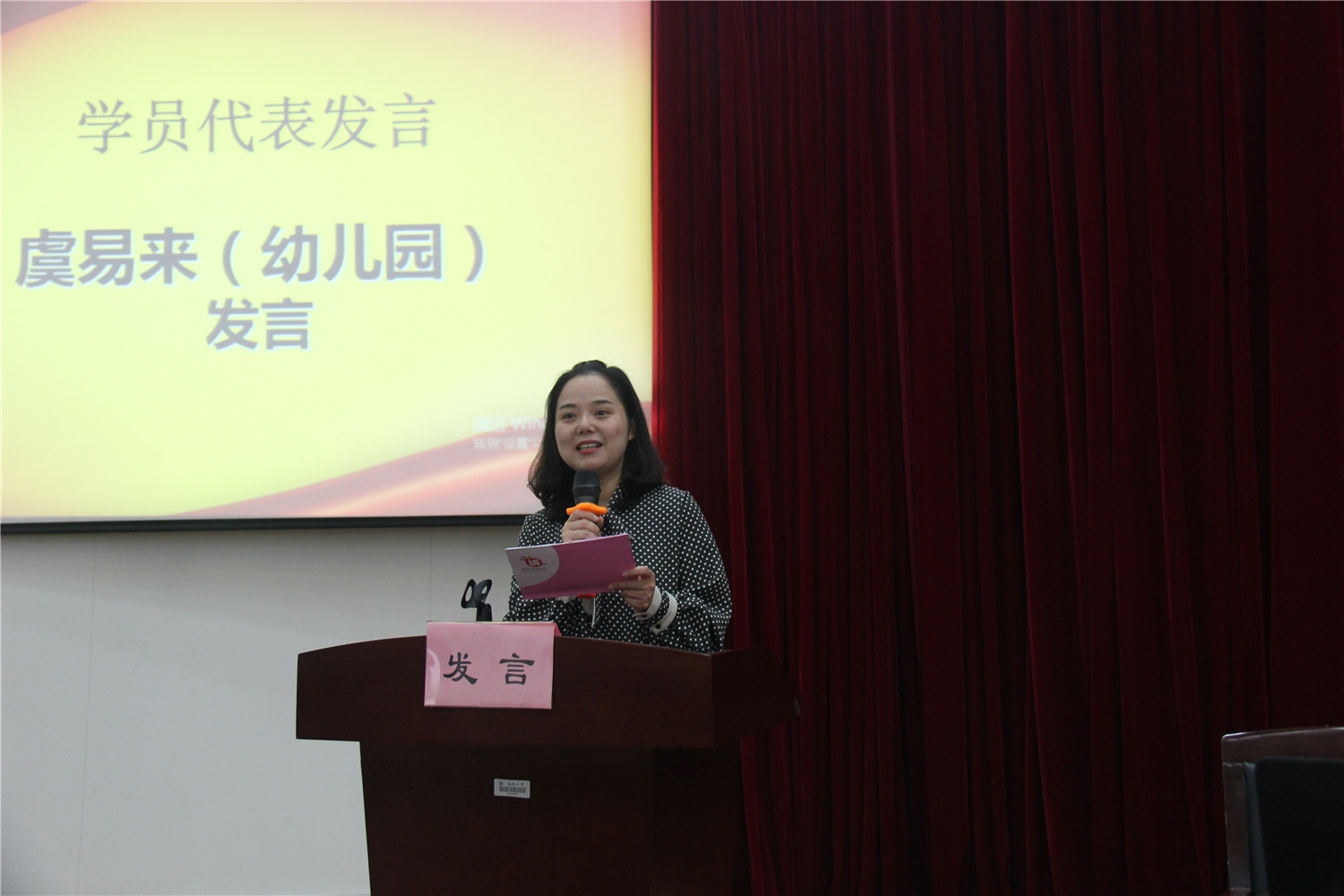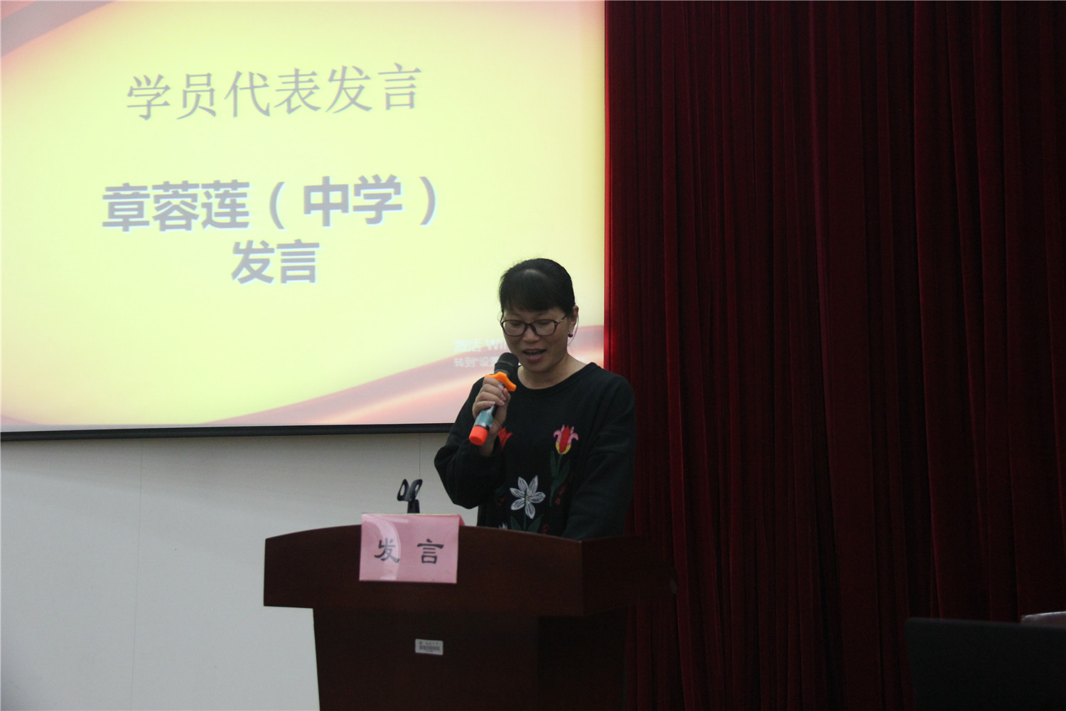 龙湾区永强中学章蓉莲副校长、成人色情 附属实验幼儿园虞易来老师分别代表中学校长班、园长班的学员发言。