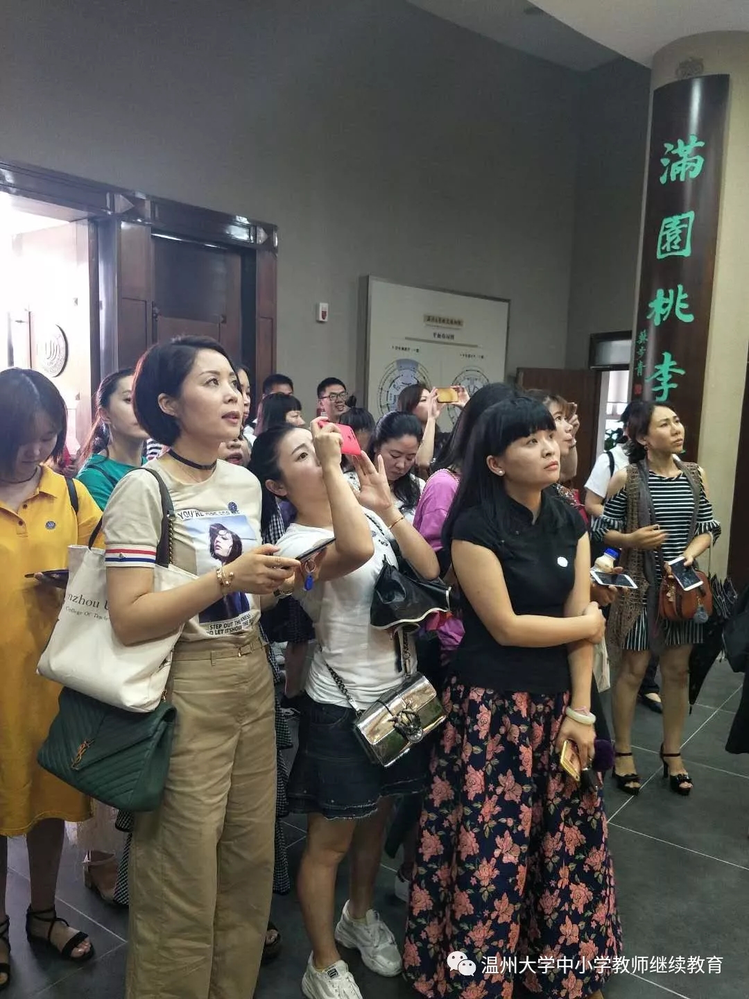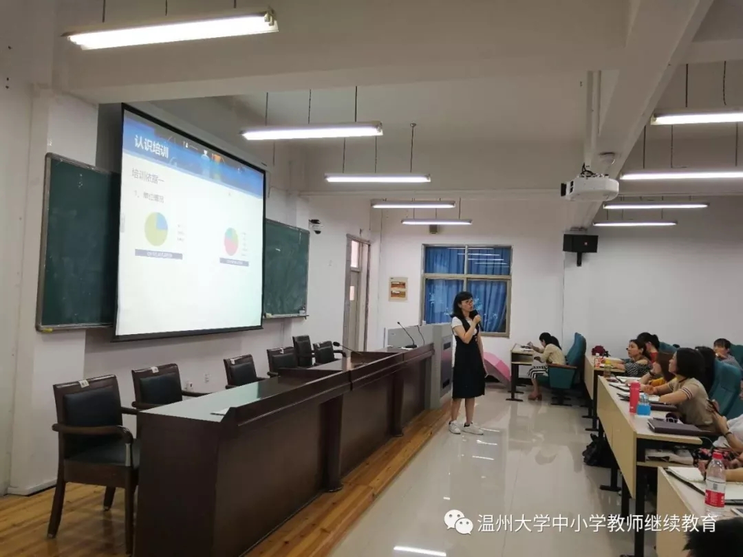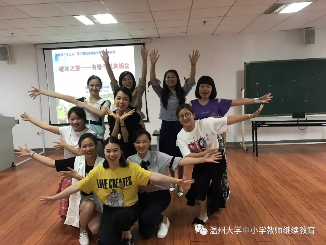 校友仪式 5月23日上午,此次园长培训项目负责人林鹣鹣老师为各位学员详细地介绍本次培训课程的内容设计、学习安排和考核要求。在课程的最后,林老师说,从我们走进温大的那刻起,就成为了温大的校友,作为校友,我们要有一个仪式,于是就有了校友仪式的一幕:培训团队的老师为我们发放并佩戴温大校徽,还为每个组长发放了一个带有校徽logo的钥匙扣,林老师说,每个学员现在或将来都是通向专业领域的一把钥匙,组长要像这个钥匙扣,紧紧得联系每个组员,今天的“培训学习共同体”会为我们的专业成长不断发挥作用。这满满的仪式感让我们对接下来的一切充满了实实在在的憧憬。—— [瑞安上望康康幼儿园黄倩瑜]