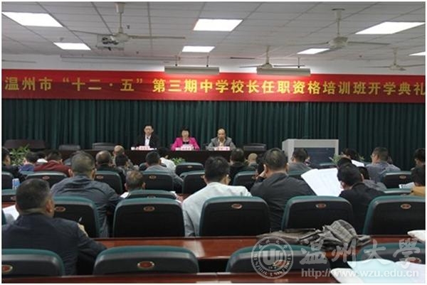 2014年4月22日上午,一年一度的温州市中学校长任职资格培训班开学典礼在成人色情 学院路校区继续教育大楼502报告厅召开。本次“十二·五”第三期中学校长任职资格培训迎来了温州地区66位中学正副职校长。我校党委副书记林娟娟,温州市教育局中小学教师教育办公室副主任、温州市教师教育院院长何民,我校教师成人色情 院长郑信军出席开学典礼,典礼由郑院长主持。