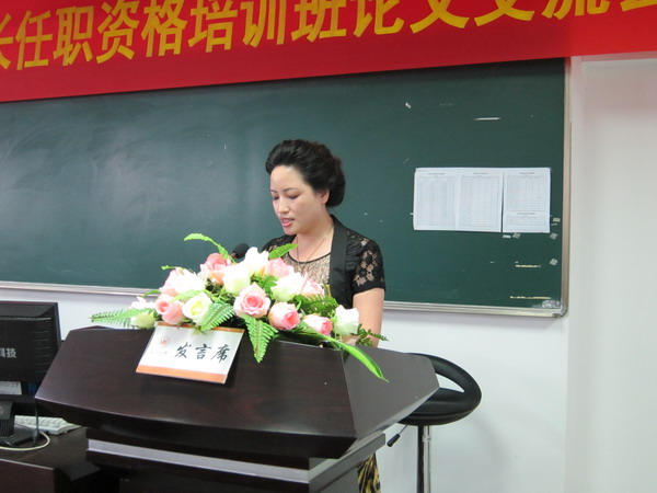 张宝臣副院长主持,商学院来新安老师任评委,对本次培训的八篇优秀论文进行了交流、点评。八位校长分别就国学教育、创业教育、综合实践活动的开发、学生的自我管理、绩效工资、党建工作以及校长的自我发展等方面进行了交流,分享了宝贵的经验,来新安老师对八位校长的论文一一作了点评,他的精彩评语不时引得校长们的热烈掌声。本次论文交流为学员们提供了一次进一步对照反思、取长补短的学习机会。