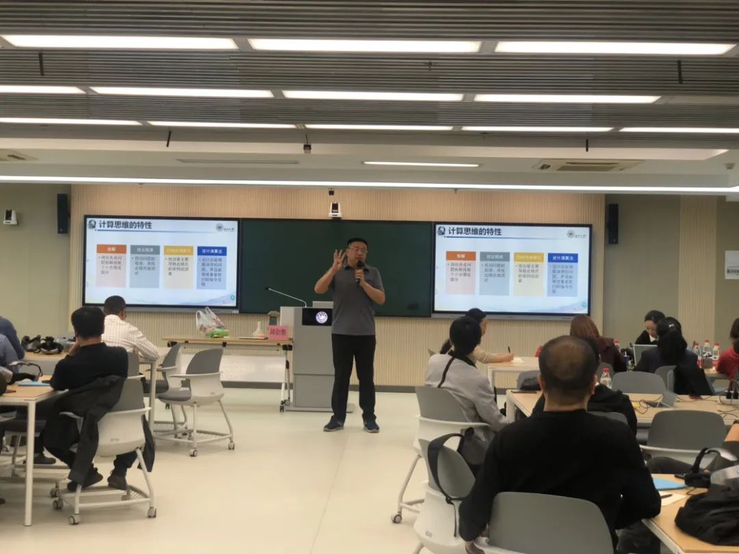 邱创楷副教授用丰富的课堂模式为学员们带来了关于《计算思维与VR教学应用》。课上,学员老师们带上VR眼镜进入到虚拟世界,体验了VR教学的乐趣与直观感受;又通过一只直线型气球尝试建立了有关编程简易代码与现实操作的联系;最后我们每位老师在计算机PC端中通过智能游戏程序切实的将课程中学到的内容应用到课程的实践中去,完整而又丰富的一趟课程给学员老师们带来了深刻的直观体验。
