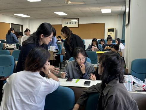林琛琛副教授从儿童的视角出发,图文并茂地为大家讲解了班级区域环境创设要素、游戏材料选择与投放策略,深入分析了如何根据常规区和特色区的特点进行环境创设与材料投放,并提出了游戏材料设计与应用的新思路。重点介绍了益智类游戏材料的创新设计,讲解了如何基于一本绘本设计幼儿园游戏棋,并带着学员们以小组合作的形式体验合作性游戏棋的独特魅力。