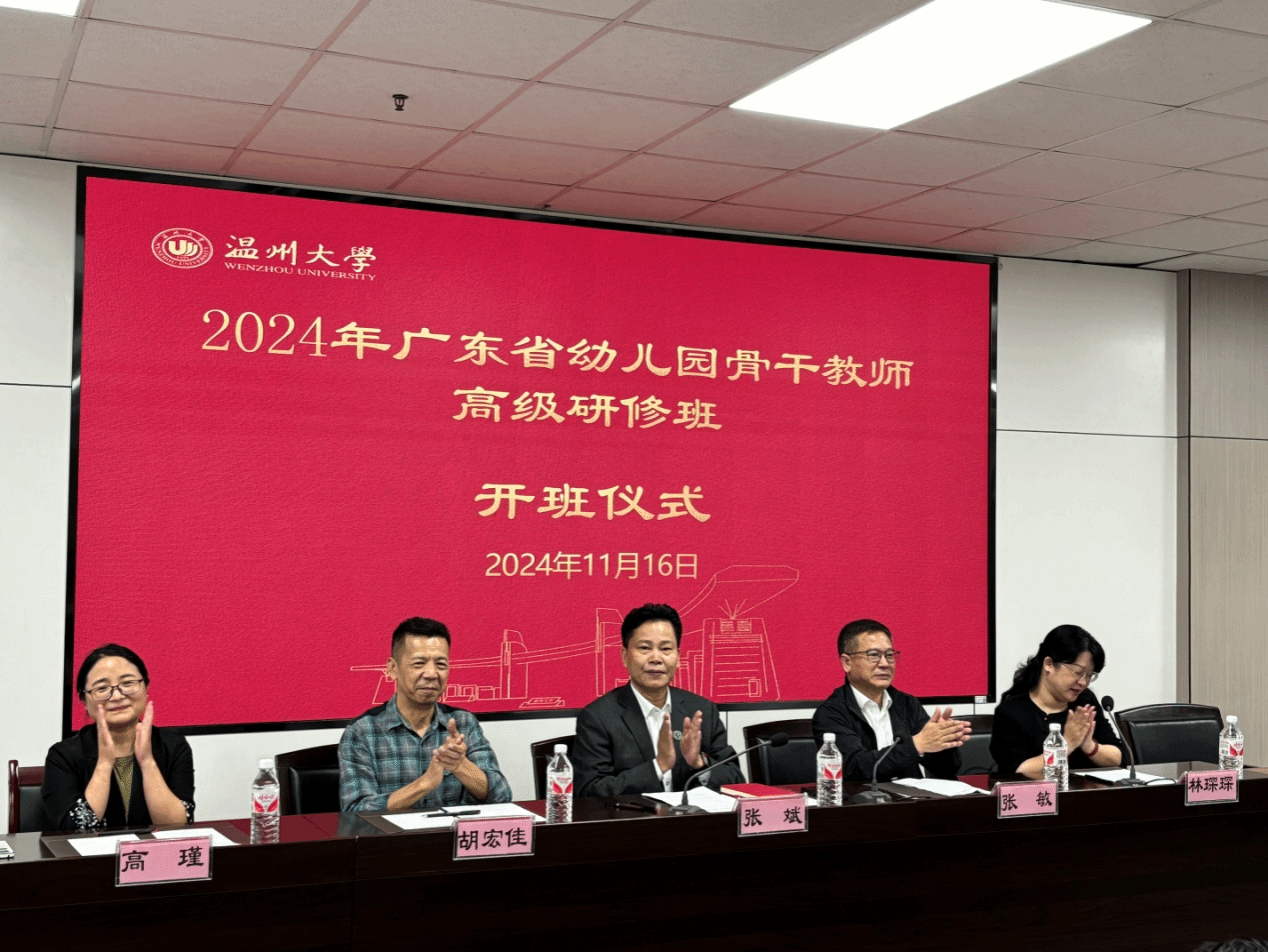 2024年11月16日上午,2024年广东省幼儿园骨干教师高级研修班第二阶段学习开班仪式在成人色情 学院路校区继教楼502报告厅盛大开幕。出席开班仪式的嘉宾包括:广东省外语艺术职业学院党委委员、副校长张斌,广东省中小学教师发展中心副主任胡宏佳,成人色情 党委书记、副院长张敏,成人色情 副院长林琛琛,成人色情 学前教育系书记高瑾。开班仪式由成人色情 副院长林琛琛主持。