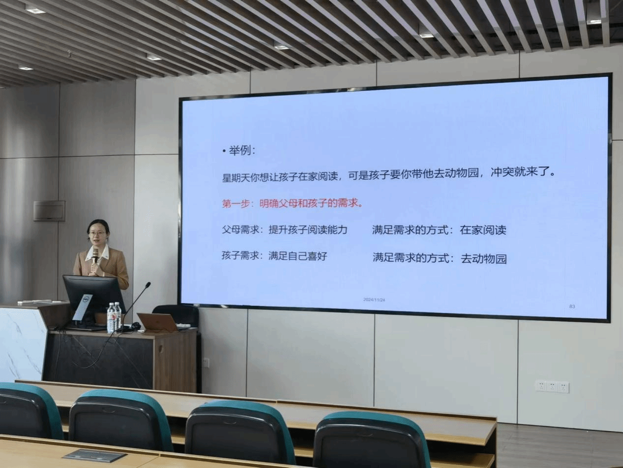 随后,龚老师详细介绍了父母教育风格的四种类型:权威民主型、放任型、权威专制型以及冷漠型,并对每种类型的特征及其对孩子成长的影响进行了深刻的分析。通过对不同类型父母教育方式的对比,龚老师指出,“权威民主型教育”是最有利于孩子健康成长的教育模式。这种教育模式不仅能够培养孩子的独立思考能力,还能促进其社会技能的发展,为其未来的学习和生活打下坚实的基础。