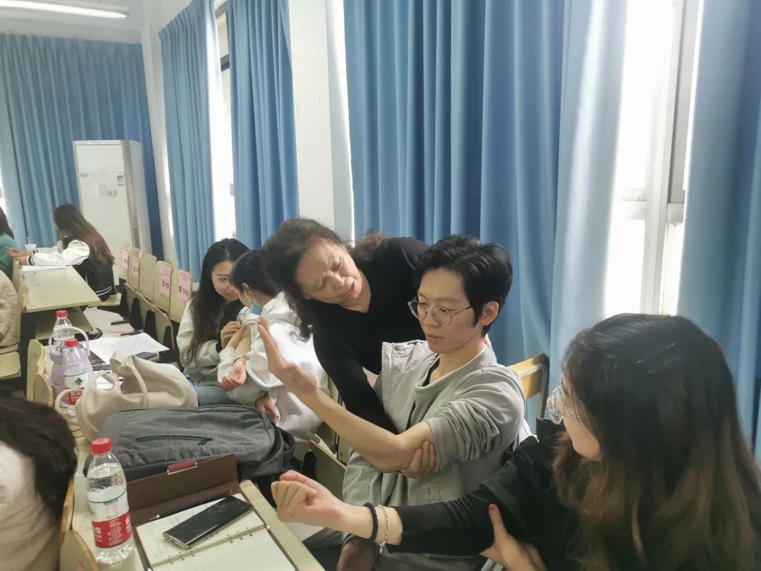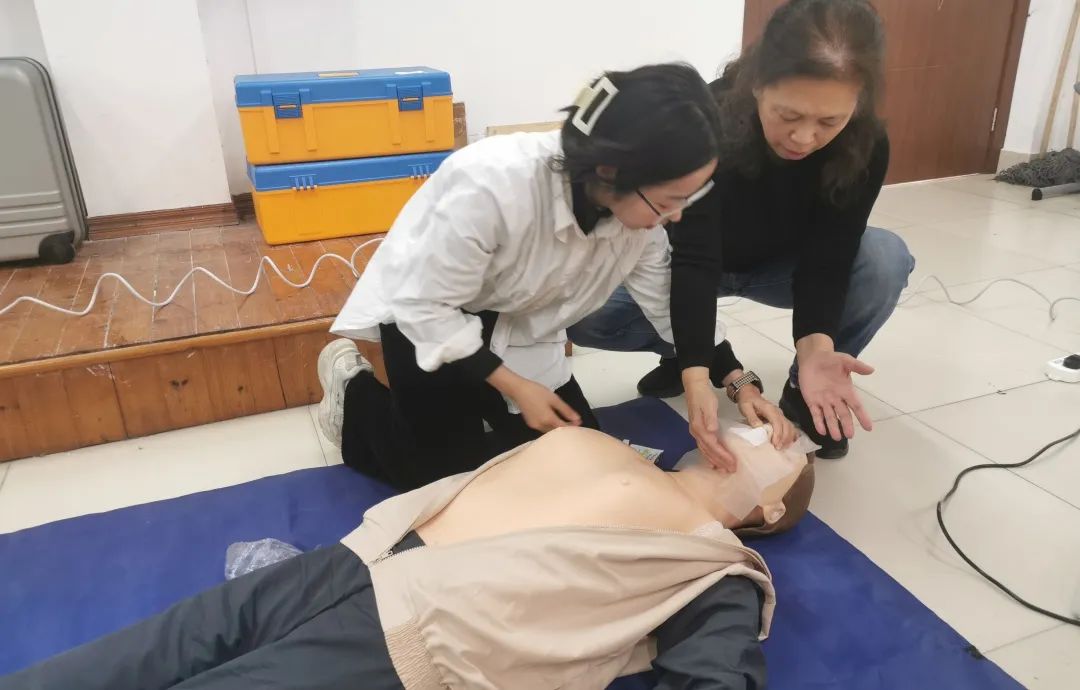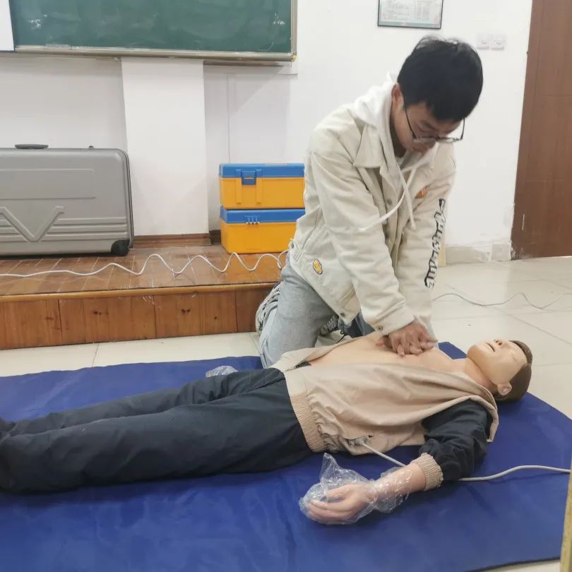 授人以鱼不如授人以渔。最后,陈文教授传授了全体教师急救止血和心肺复苏术的方法。陈文教授向新教师们分别展示了身体不同部位失血时应该采取怎样的按压止血操作,各位学员也纷纷根据指示去寻找对应的身体部位,陈文教授也走到学员身边跟学员交流,帮助一些学员纠正姿势,现场学习的氛围非常浓厚。