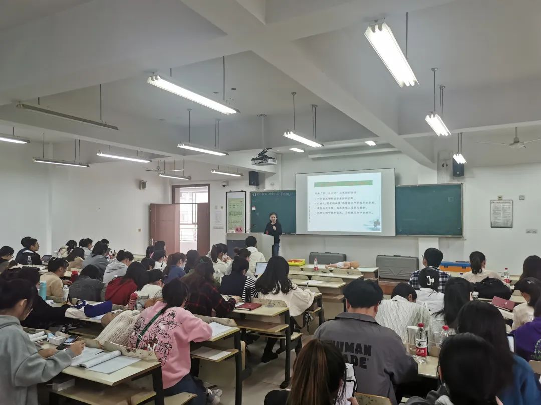 陈文教授用她专业的医学知识给全体教师科普了急救的前4-6分钟是“黄金”时间以及重要的处理原则。第一,对事故现场做出安全性判断;第二,对病人伤情做出严重程度的判断;第三,决策抢救方案,指挥现场人员参与救护。只有面对紧急情况冷静分析,及时反应处理,才能在黄金时间内帮助伤者脱离危险,重获健康。