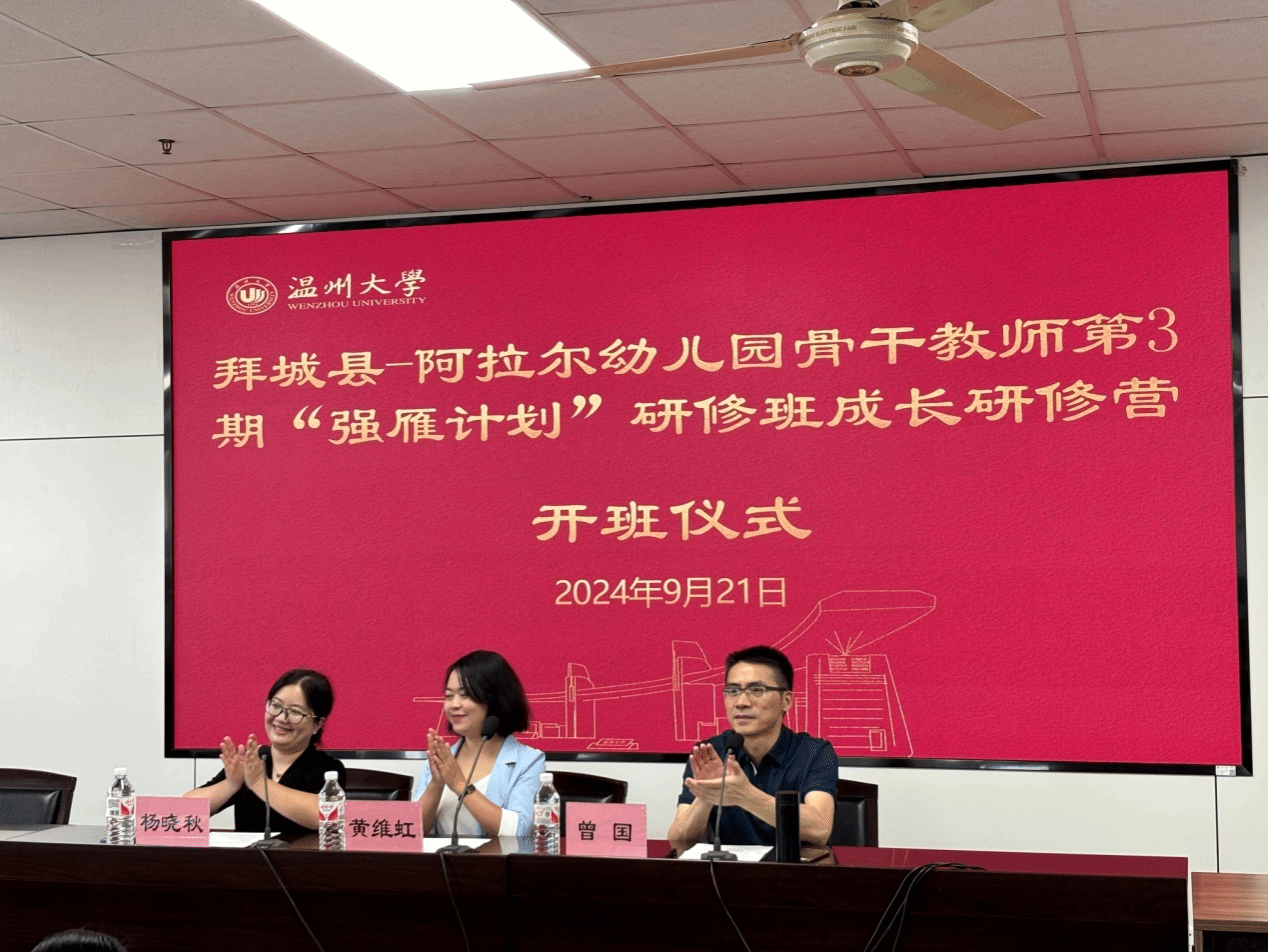 2024年9月21日上午,拜城县-阿拉尔幼儿园骨干教师第3期“强雁计划”研修班成长研修营开班仪式在成人色情 学院路校区继教楼502教室举行。拜城县教育局学前办黄维虹老师、成人色情 成人色情 曾国副教授以及来自拜城县和阿拉尔的骨干教师参加开班仪式。开班仪式由成人色情 培训中心副主任杨晓秋主持。