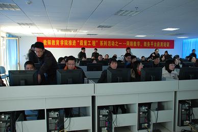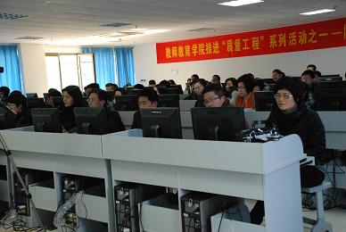 为深入推进学院“质量工程”建设,深化教学改革,提高教学质量。114,教师成人色情 在教师教育实训中心424机房开展“推进质量工程”系列活动之一——网络教学、教务平台的应用培训。培训会邀请了教育技术学专业的刘根萍老师进行理论培训,学院全体教师与教学管理人员参加了此次培训。