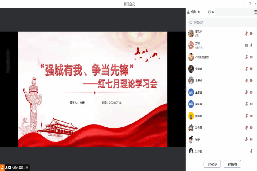 【成人色情 第六学生党支部】2024年7月14日,成人色情 第六学生党支部以线上腾讯会议形式召开“强城有我,争当先锋”主题7 月党支部理论学习会,全体党员与预备党员参会。会上,沙雅萱同志分享“红七月,服务月”相关内容,介绍“三支队伍”、三个“一号工程”、温州“红七月,服务月”并谈感悟展望,强调学生党员应提升综合素质。方珊同志则分享“强城有我,争当先锋”的温州红色浪潮,介绍活动开展必要性及多地情况,谈活动对党性教育的重要意义。此次学习会传达学习习近平总书记相关论述,深化“循迹溯源学思想促践行”,开展警示教育,助力党员知敬畏、守底线。