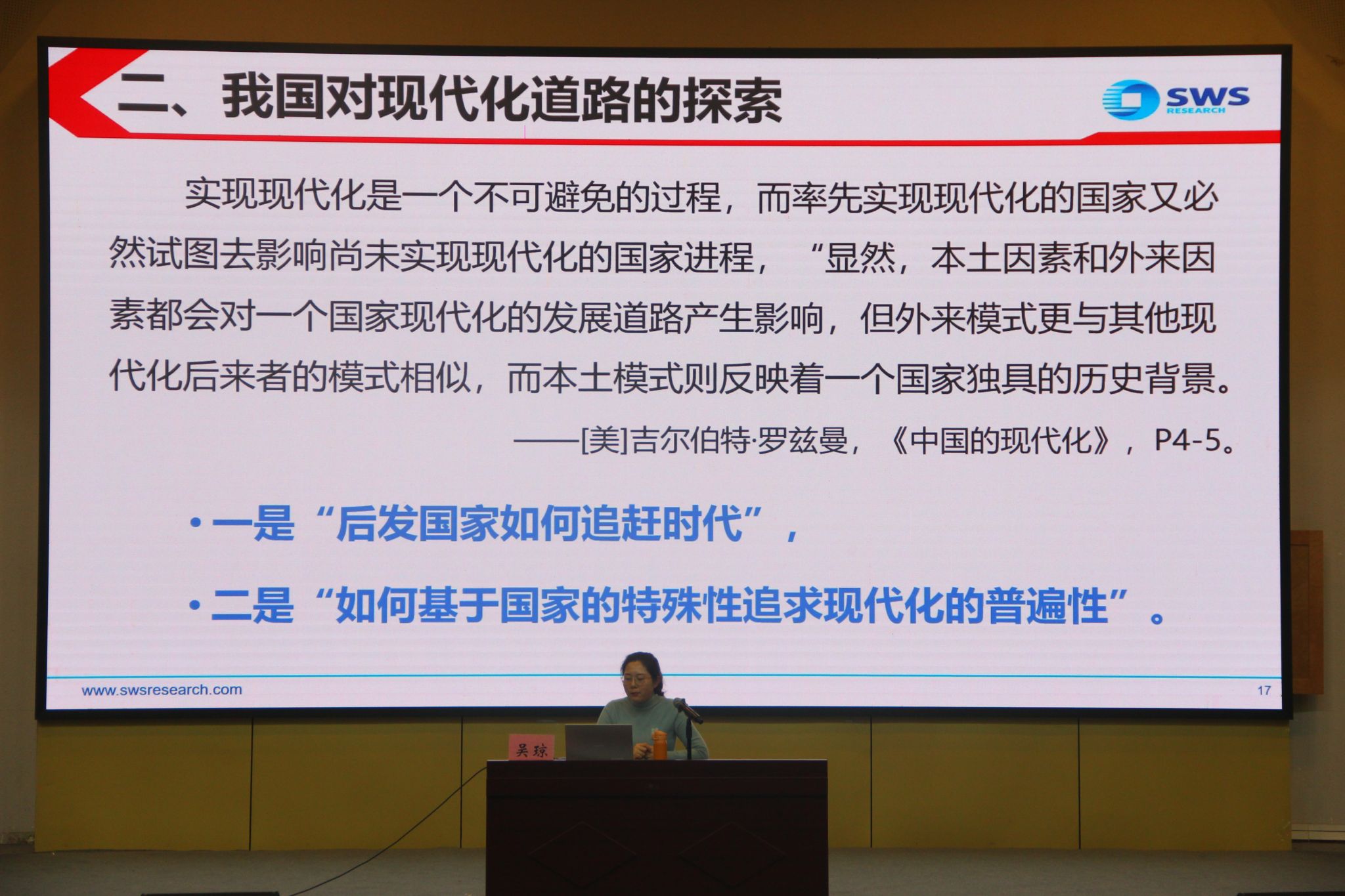 12月11日下午,成人色情 开展了以《全面准确把握中国式现代化的思想要义》为主题的《形势与政策》课,成人色情 马克思主义学院副教授吴琼老师担任本次课程的主讲人。