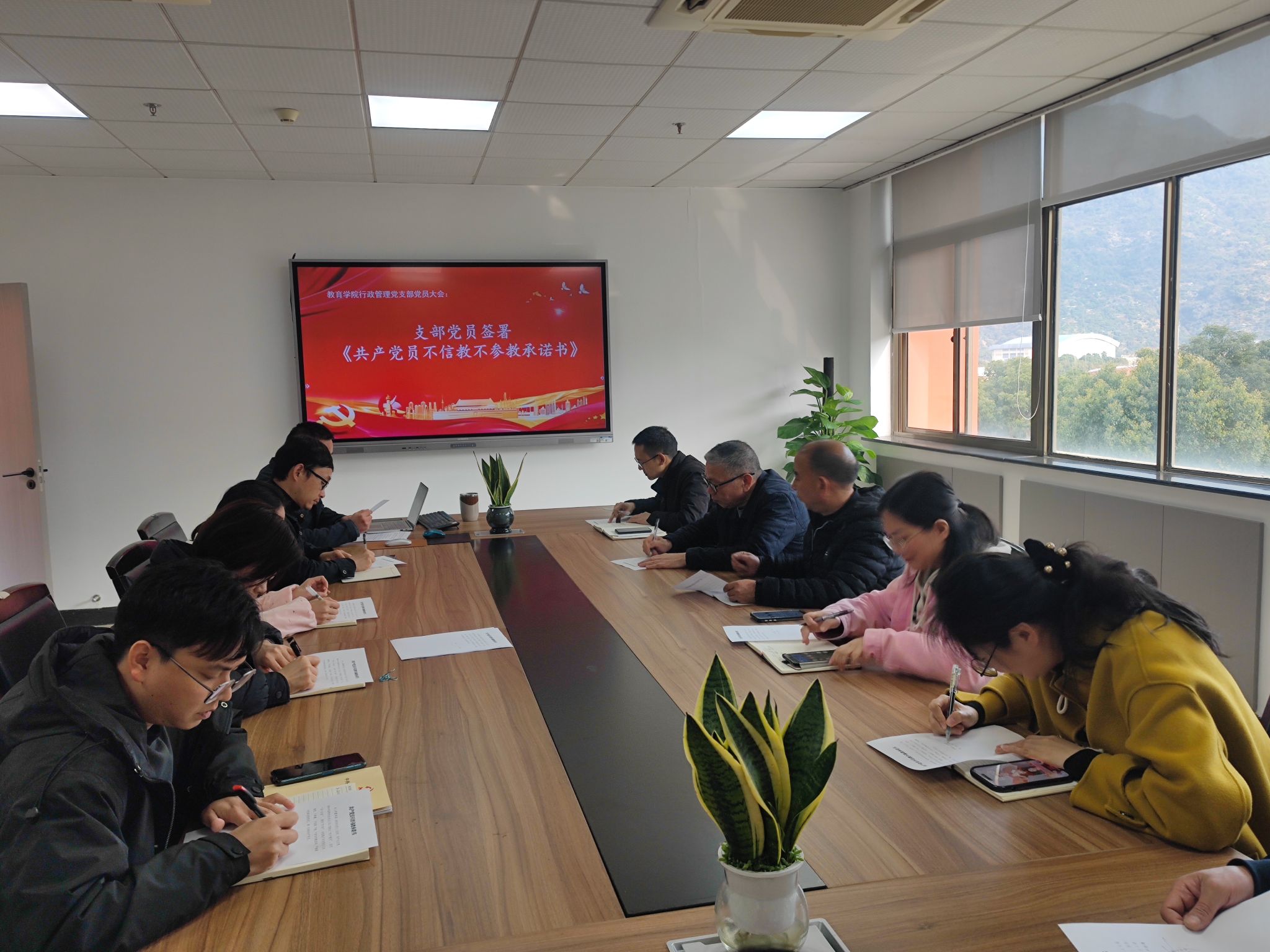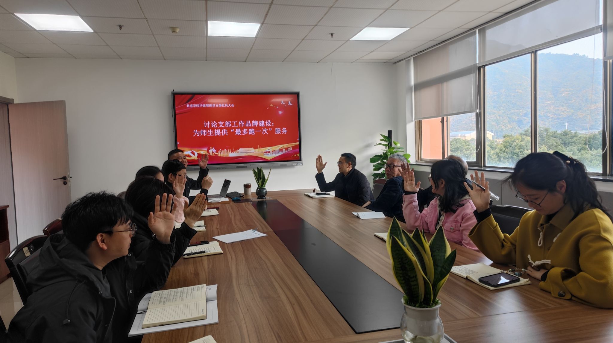 会议开展理论学习。先后学习党中央《关于在全党开展深入贯彻中央八项规定精神学习教育的通知》文件精神,全国高校、全省高校、成人色情 、成人色情 等上级党组织党的建设工作会议精神,成人色情 “重担当、强引领、作表率” 主题活动及党员先锋引领“十要”工作要求等内容。会议坚持理论与实际相结合,加强支部品牌建设。结合支部职能特色,经全体党员商议并表决,支部决定打造“最多跑一次”党建工作品牌。本次会议最后还宣布了温大纪委【2025】1号文件相关内容,希望大家能强化责任意识,积极履职。