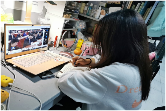 第四学生党支部 谢琪琪同志:回望“十三五”,中华民族伟大复兴向前迈出了一大步,这让我们更有信心、底气、本领去迎接新挑战。前瞻“十四五”,在以习近平同志为核心的党中央的坚强领导下,在14亿多中国人民的共同努力下,我们一定能走好自己的路、办好自己的事,用自身发展的确定性对冲外部环境的不确定性,在统筹两个大局中不断赢得新胜利!