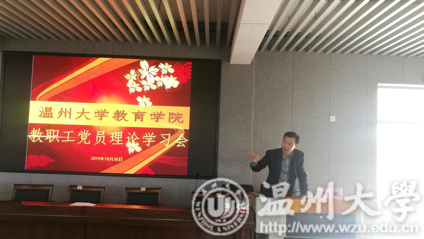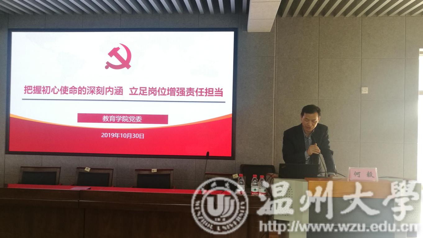 10月30日下午,成人色情 “不忘初心、牢记使命”主题教育第二次全院理论学习扩大会在成人色情 9C301举行,学院全体教工党员参加大会,党委书记何毅为全院教工党员讲专题党课,校主题教育巡回督导组成员、学工部副部长张朝辉到会指导。