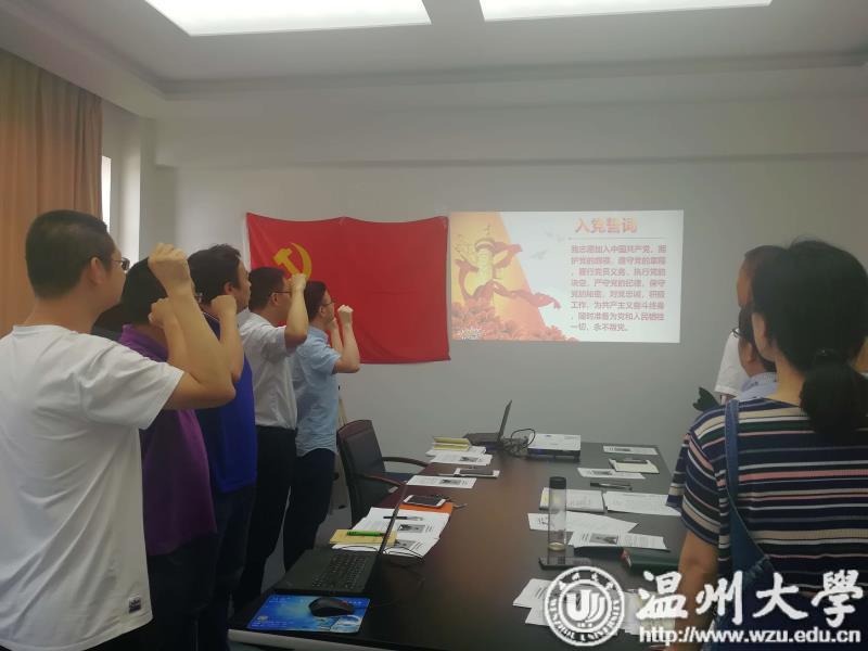 机电工程学院理论中心组开展“不忘初心,牢记使命”主题学习会,会上,全体领导、党支部书记重温入党誓词。