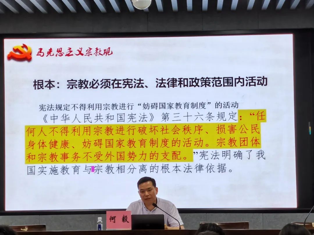 何毅书记以当今宗教的基本情况为切入点,提出我们应当用辩证唯物主义世界观来看待宗教,他围绕党的宗教基本方针、我国宗教信仰自由权利的基本内容、我国宗教信仰自由义务的基本内容、我国处理宗教事务的基本原则和相关法律规定、坚决抵制邪教以及共产党员不能信仰宗教等方面展开,为我们具体阐述公民有宗教信仰自由、国家保护正常的宗教活动、“教育与宗教相分离”的原则等有关内容。他强调,成人色情 作为成人色情 师范类专业人才培养学院,以培养具有“博·爱·雅·艺”的师范气质、突出的教育教学技能和教育创新能力的未来卓越教师为目标,成人色情 学子尤其要坚定政治立场、提高鉴别能力,树立正确马克思主义宗教观。