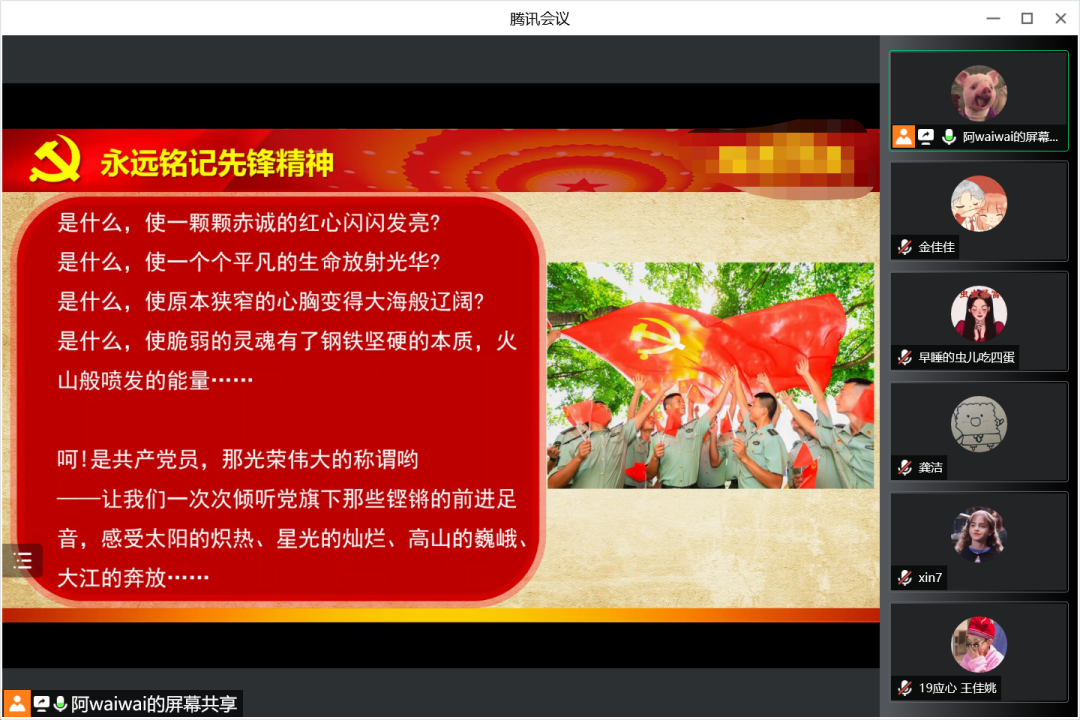 成人色情 第七学生党支部于2022年7月18日和7月20日在腾讯会议上开展“红七月·服务月”活动暨“当先锋、争先行”主题党日活动,以及七月理论学习会,全体党员参加。