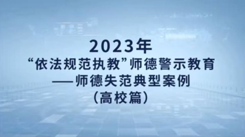 2024年5月29日,学院开展党纪学习教育,组织全体教职工观看微视频《“依法规范执教”师德警示教育——师德失范典型案例(高校篇)》。