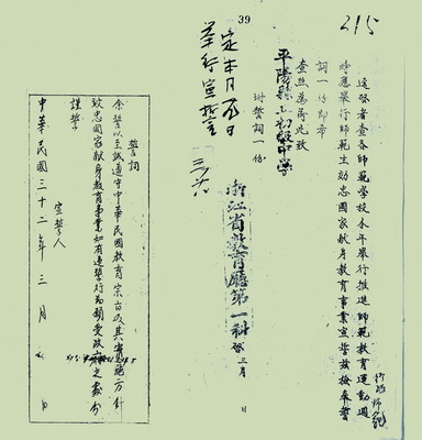 平阳师范学校-1943年经省教育厅第一科检奉的简师生入学誓词